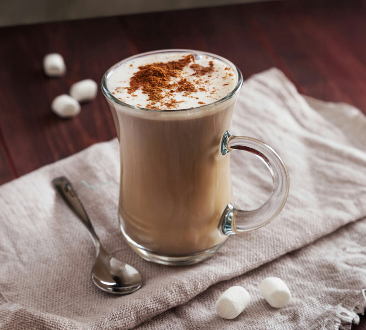 Rosta kaffebönorna i en torr stekpanna i 5 minuter. Sjud sedan kaffebönorna och mjölken i 10 minuter. Sila mjölken. Lägg chokladen i muggarna. Häll på mjölken och rör om. Dekorera med grädde, marshmallows och lite kakao.